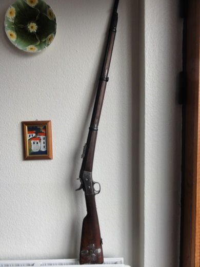 Søren Smidstrups gevær med sølvplader. Muligvis foreningens første våben.